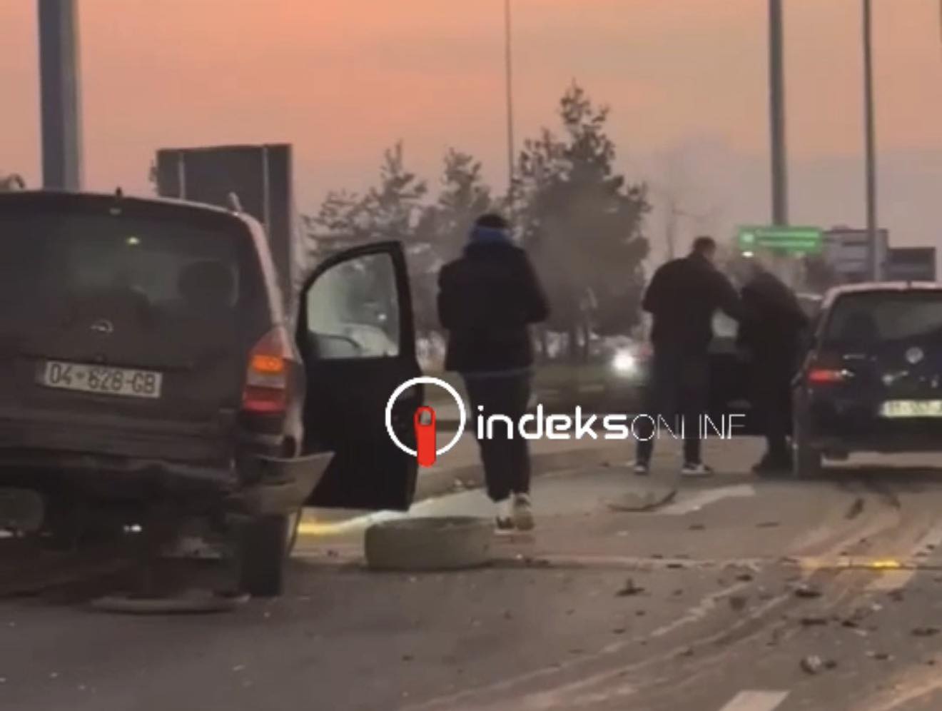 Nga pamjet e siguruara nga Indeksonline shihet se pas përplasjes mes automjeteve, njëra prej tyre ka humbur kontrollin dhe ka goditur një shtyllë, përgjatë rrugës që çon drejt aeroportit.