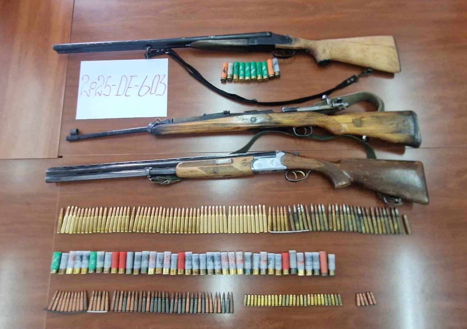 Gjatë kontrolleve, autoritetet kanë gjetur dhe konfiskuar tri pushkë, një pushkë karabine me 85 fishekë të kalibrit 8×57 mm, dy pushkë gjuetie me 48 fishekë të kalibrit 12/GA, si dhe një sërë fishekësh të kalibrave të ndryshëm, përfshirë 46 fishekë 7.62×39 mm, 28 fishekë 9 mm dhe 5 fishekë 7.62×25 mm. Përveç këtyre, është konfiskuar edhe një gëzhojë 7 mm, një pistoletë Beretta APK me 6 fishekë 9×19 mm dhe një karikator.