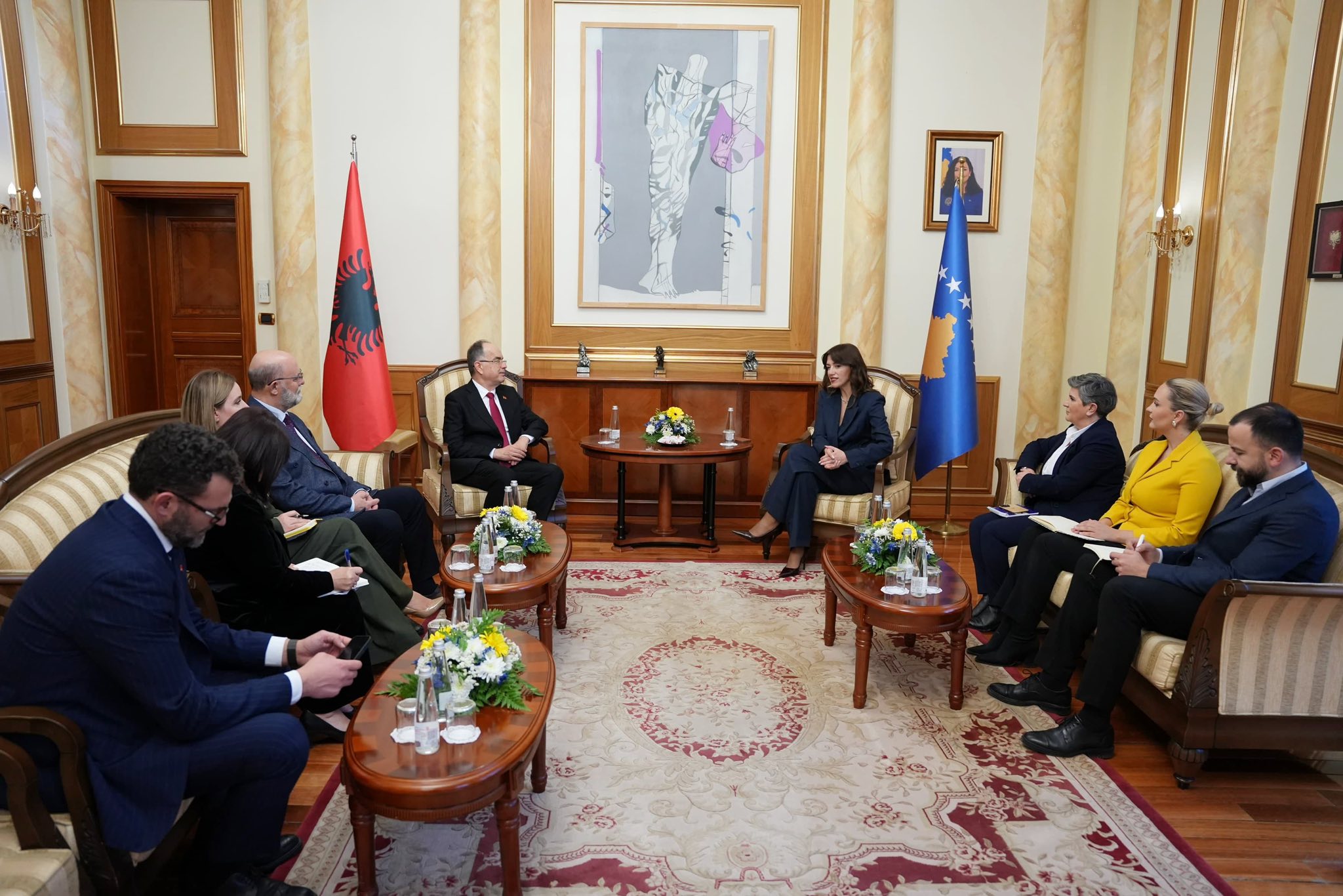 Nga ana e saj, Kryetarja Haxhiu e falënderoi Presidentin për vizitën dhe urimet, duke theksuar mirënjohjen për mbështetjen e vazhdueshme të Shqipërisë ndaj Kosovës, para dhe gjatë luftës, si dhe në fazat e shtetndërtimit dhe integrimit ndërkombëtar.