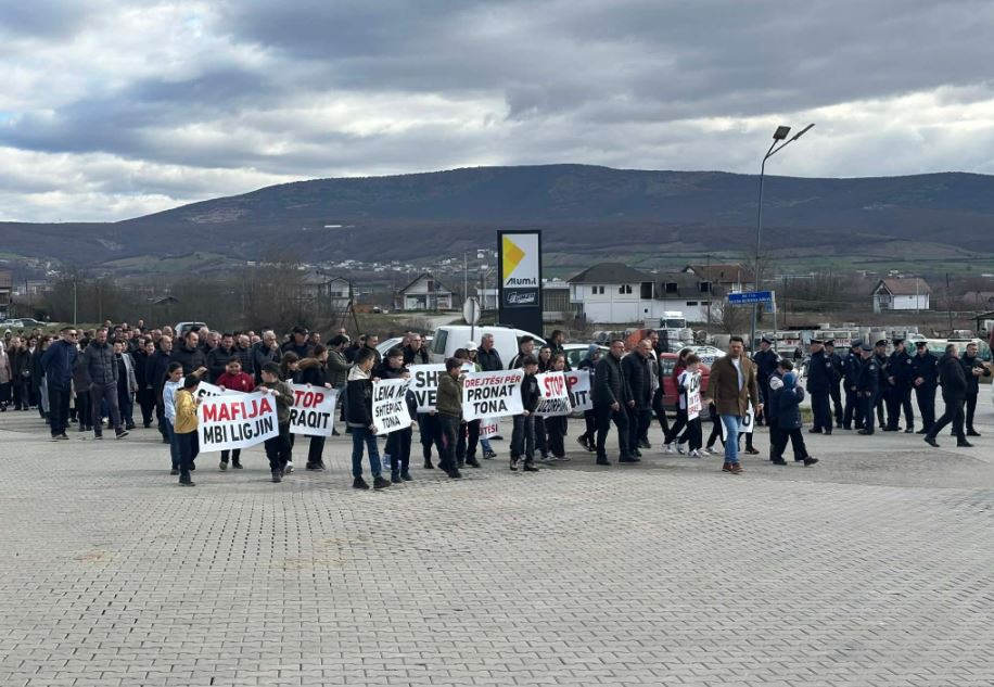 Protestuesit kanë bllokuar rrugën kryesore që kalon përmes fshatit.