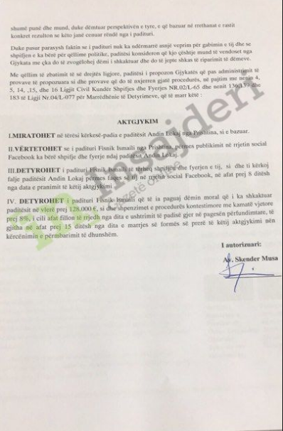 Gazetari Andin Lokaj i cili është bashkëshorti i Arbana Xharrës, ka paditur për shpifje ideputetin e e Kuvendit të Kosovës, Fisnik Ismailin raporton Insajderi.