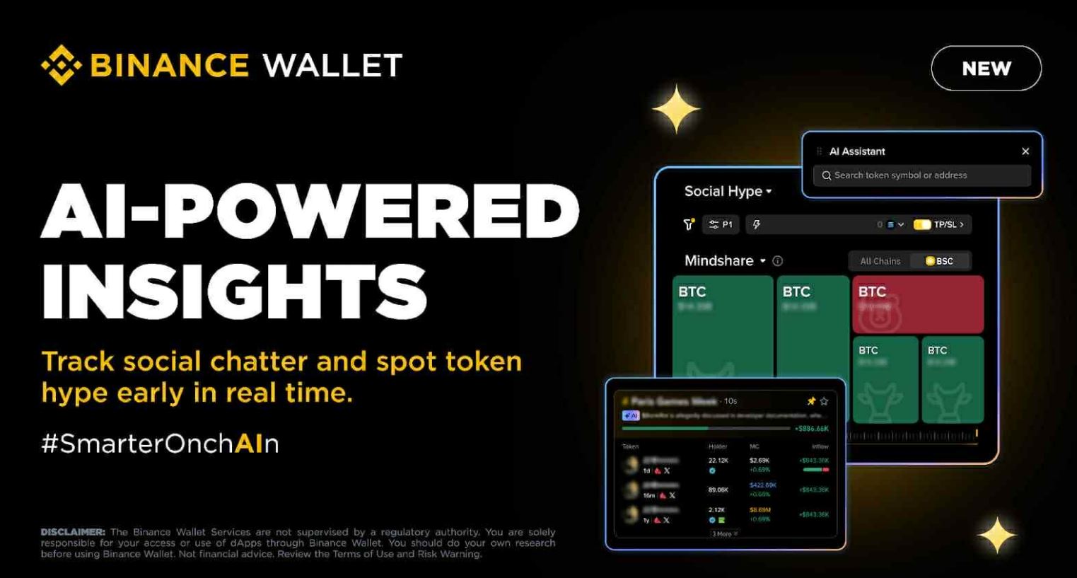 Binance Wallet ka njoftuar lansimin e tri veçorive të reja të fuqizuara nga inteligjenca artificiale në Binance Wallet (Web), me qëllim t’i ndihmojë përdoruesit të përballen me mbingarkesën e informacionit në Web3 dhe të orientohen më lehtë në tregun e aseteve digjitale. Këto funksionalitete të reja Topic Rush, Social Hype dhe AI Assistant përdorin teknologjinë proprietare të AI-së së Binance për t’u ofruar përdoruesve informacione të strukturuara, të përditësuara dhe të bazuara në të dhëna reale, në disa rrjete blockchain njëkohësisht.