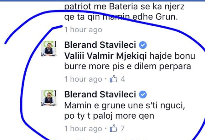 Teksa një qytetar e kishte kundërshtuar në një postim të Stavilecit në Facebook, ai nuk ishte përmbajtur duke përdorur fjalë fyese ndaj tij.Kësisoj ai ka nisur një listë fyerjesh dhe komentesh ndaj tij.
