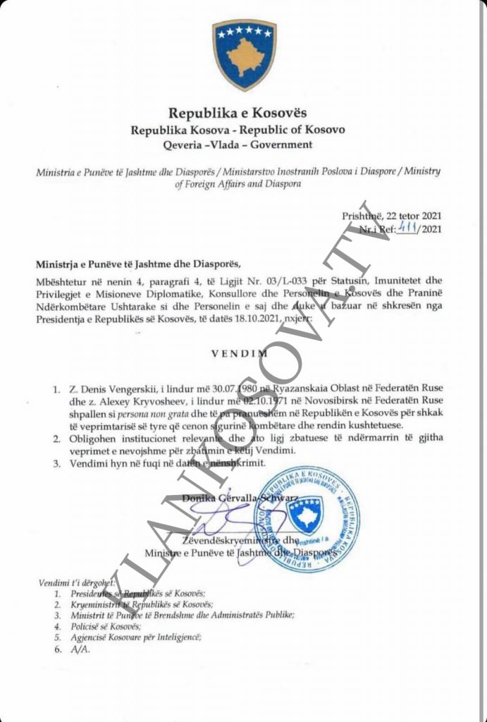 Skenderaj Drenas Mitrovicë Mitrovicë e Veriut Vushtrri Zubin Potok Zveqan BallinaLajmeDenis Vengerskii dhe Alexey Kryvosheev, rusët e shpallur non grata (Dokument Denis Vengerskii dhe Alexey Kryvosheev, rusët e shpallur non grata (Dokument Të ngjajshme Sport Shkëlqen Florent Hasani, shënon hat-trik për Bolusporin në Turqi Futbollisti i Kombëtares së Kosovës, Florent Hasani është duke... Lajme OEK i kërkon BE-së të heqë masat kufizuese dhe të hapë rrugën për zhvillim Kryetari i Odës Ekonomike të Kosovës, Lulzim Rafuna, ka... Lajme Këta deputetë kanë aplikuar për pagë kalimtare në Kuvend për 12 muaj pas mandatit, edhe pse s’punuan asgjë Në bazë të Ligjit për të Drejtat dhe Përgjegjësitë... Kuriozitete Ish-shefi i Seat dhe Cupra ka një punë të re, krijon rakinë personale të tij Më pak se një vit pasi la pozicionin drejtues... Sport Maresca e mposht Guardiolan dhe Artetan, shpallet më i miri i muajit në Premier League Trajneri i Chelseat, Enzo Maresca, është shpallur trajneri i... Me vendim të Ministrisë së Punëve të Jashtme të Kosovës, dy shtetas rusë janë shpallur si ta padëshirueshëm në Kosovë. Sipas vendimit të publikuar, personat e shpallur non grata janë Denis Vengerskii dhe Alexey Kryvosheev, transmeton Klankosova.tv. - Advertisement - 01https://drenicapress.org/ Artikulli paraprakSkandaloze: Militanti i VV’së i paraqet drenicasit si ‘serbë’ e Skenderajn si ‘Kralevë’Artikulli tjetërKëta janë dy rusët që u shpallën persona non-grata në Kosovë Të Fundit Sport Gjasat e Dritës dhe Shkëndijës për të kaluar në fazën e play-offit në UEFA Conference League Lajme Vërmicë: Zbulohet ngarkesë e fshehur me pajisje sportive, kozmetikë dhe produkte për fëmijë Lajme Sallahu ndan certifikata licencimi për profesionistët e shërbimeve sociale dhe familjare Lajme Rritet ndjeshëm numri i ankesave në OSHP, problem mungesa e ekspertëve Sport Sport Jurgen Klopp në Real Madrid? Sport Gjasat e Dritës dhe Shkëndijës për të kaluar në fazën e play-offit në UEFA Conference League Sport Shkëlqen Florent Hasani, shënon hat-trik për Bolusporin në Turqi Sport Maresca e mposht Guardiolan dhe Artetan, shpallet më i miri i muajit në Premier League Sport Po shkëlqen te Trabzoni, presidenti flet për Muçin: Do ta marrim nga Besiktasi, do ta bëjmë…! ShowBiz ShowBiz Shkurta për Labin: Ka ardhur për të më thumbuar mua, asgjë s’i kam bërë, çka do t’i bëjë ShowBiz Nora shkëlqen në paraqitjen e fundit në Instagram ShowBiz Egli ‘mbulohet’ nga buqetat me lule
