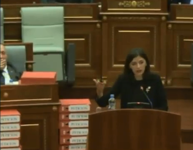 Derisa deputetja e Lëvizjes Vetëvendosje, Albulena Haxhiu, po fliste në seancën e Kuvendit të Kosovës, dhe po kundërshtonte këtë marrëveshje, Haradianajt po i flihej.