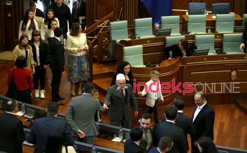 Rifat Jashari, kryefamiljari i familjes të komandantit Legjendar Adem Jashari, po merr pjesë si i ftuar i veçantë në seancën e organizuar nga Kuvendi i Kosovës për nder dhe në kujtim të veprës së familjes Jashari.