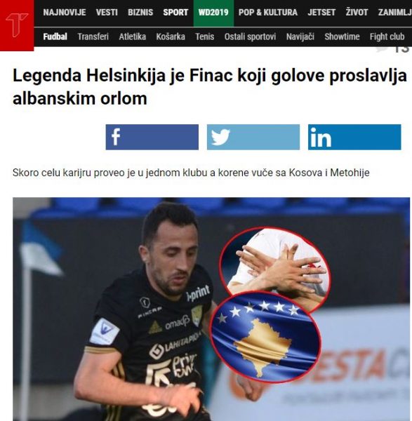 “Legjenda e Helsinkit është një finlandez që golat i feston me shqiponjën shqiptare”, ka shkruar mediumi i njohur serb.”