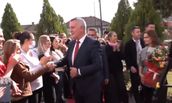 Pas fitores, Ahmeti është pritur me lule e urime nga zyrtarët e komunës të cilën do ta udhëheq edhe për katër vitet e ardhshme.