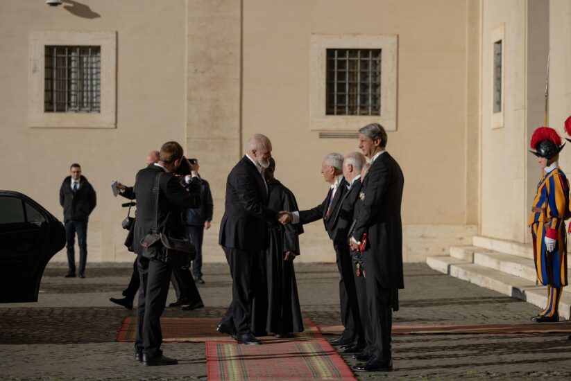 “Në Pallatin Apostolik të Vatikanit – Pritja nga Prefekti i Shtëpisë Papnore dhe Zotërinj të Shenjtërisë së Tij”, shkroi kryeministri shqiptar.