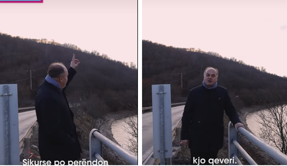 Teksa shëtit mbi urë, ai shton: “Sikurse po perëndon dielli atje, kështu po perëndon edhe kjo qeveri”, duke nënkuptuar se mandati i ekzekutivit të drejtuar nga Albin Kurti po shkon drejt fundit.