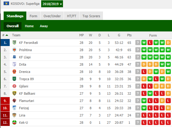 Pas javës së 28-të Feronikeli është rikthyer në pozitën e parë me 65 pikë, po aq sa ka edhe Prishtina në të dytin.