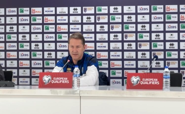 Përzgjedhësi i Kombëtarës së Kosovës, Franco Foda dhe portieri Aro Muric u paraqitën sot në konferencën zyrtare për media para ndeshjes ndaj Sllovenisë.