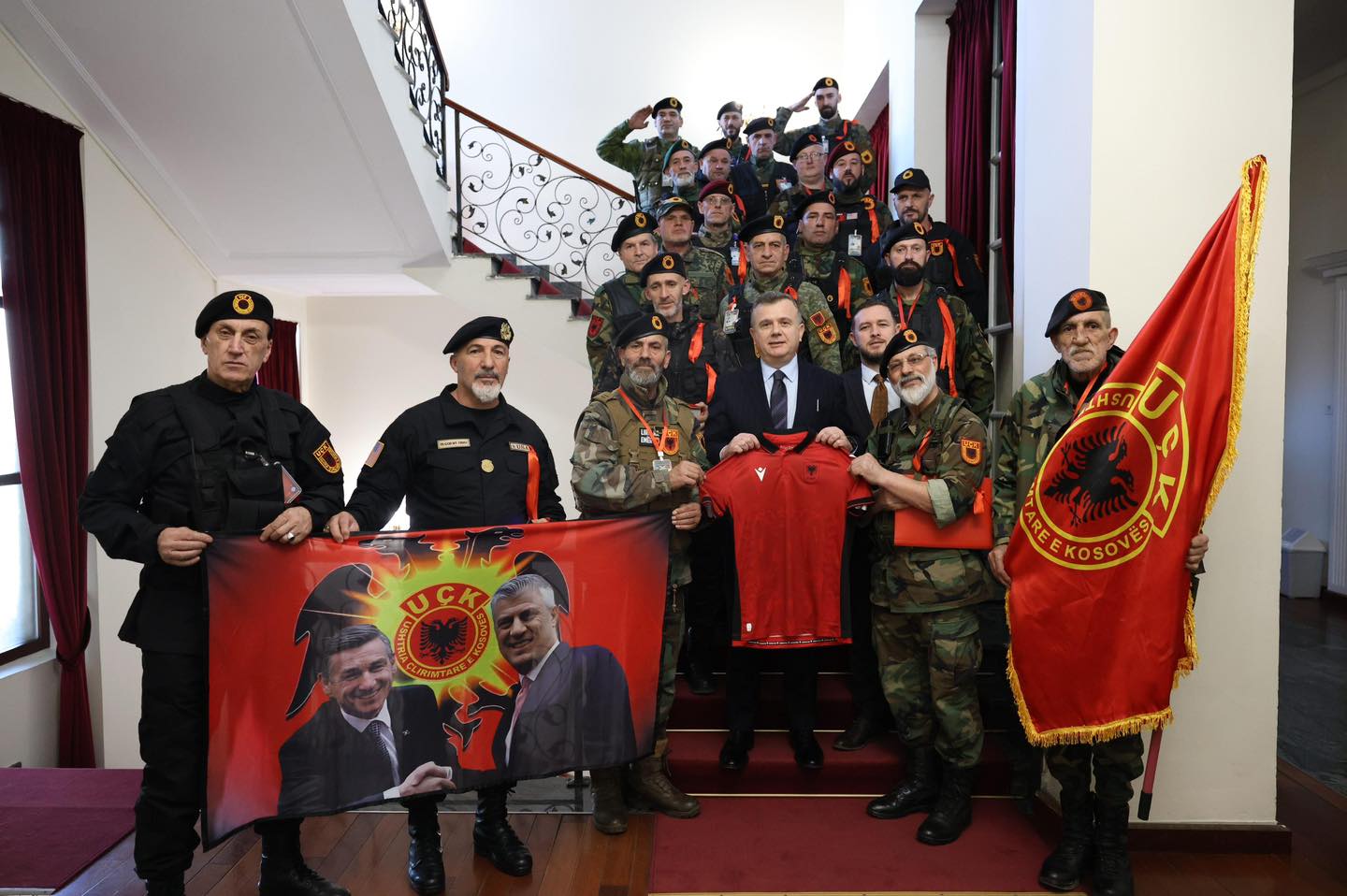 Në fotografitë e shpërndara nga Balla shihet se veteranët i kanë dhuruar fotografinë e Hashim Thaçit.