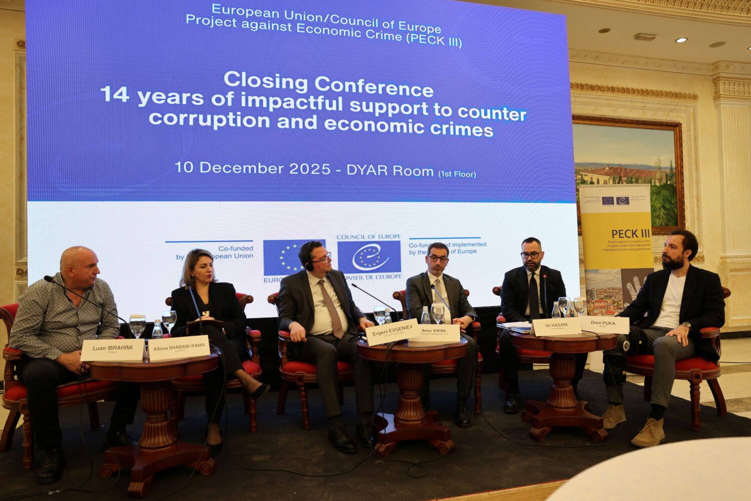 Ndërsa në vazhdimësi të punimeve, u diskutua edhe për rolin e BQK-së në projektin PECK III. Në këtë panel diskutimi, Udhëheqësi i Divizionit për Pajtueshmëri PPP/LFT, z. Ilir Hasani diskutoi lidhur për forcimin e regjimit kundër pastrimit të parave dhe financimit të terrorizmit, progresi, sfidat dhe mësimet e nxjerra nga ky projekt.