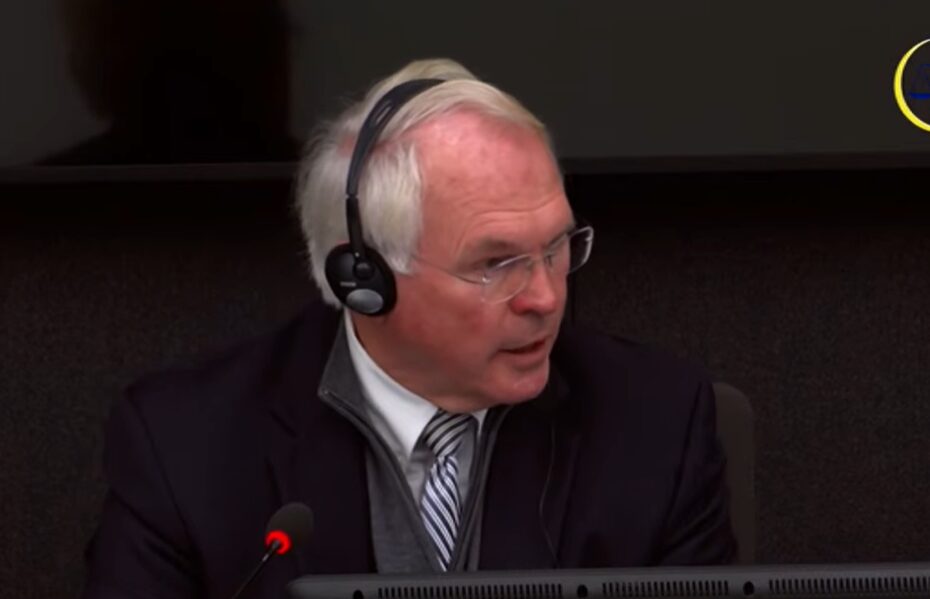 Hill po merret në pyetje nga prokurori James Pache, i cili po i parashtron pyetje lidhur me Volfgang Petriç dhe Hashim Thaçi.