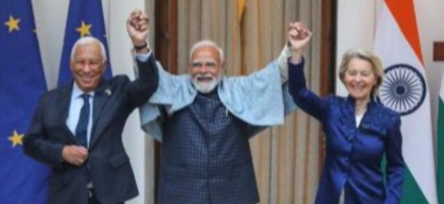 Von der Leyen: Është ‘nëna e të gjitha marrëveshjeve’, krijojmë treg me 2 miliardë njerëz. Kryeministri indian Modi: Marrëveshja do krijojë mundësi të mëdha.