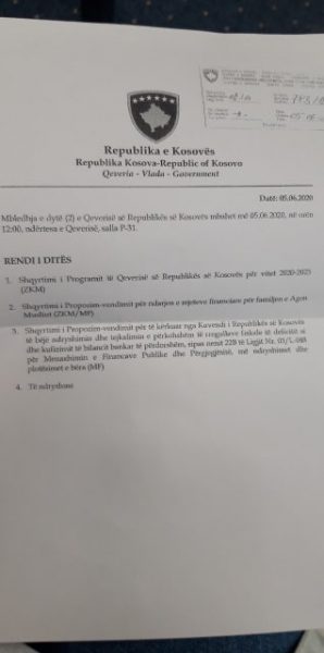 Si pikë e dytë është shqyrtimi i propozim vendimit për ndarjen e mjeteve financiare për familjen e Agon Musliut, 26-vjecarit nga Komuna e Gjilanit që ndërroi jetë në rrethana tragjike gjatë kohës sa po qëndronte në karantinë në konvikte.