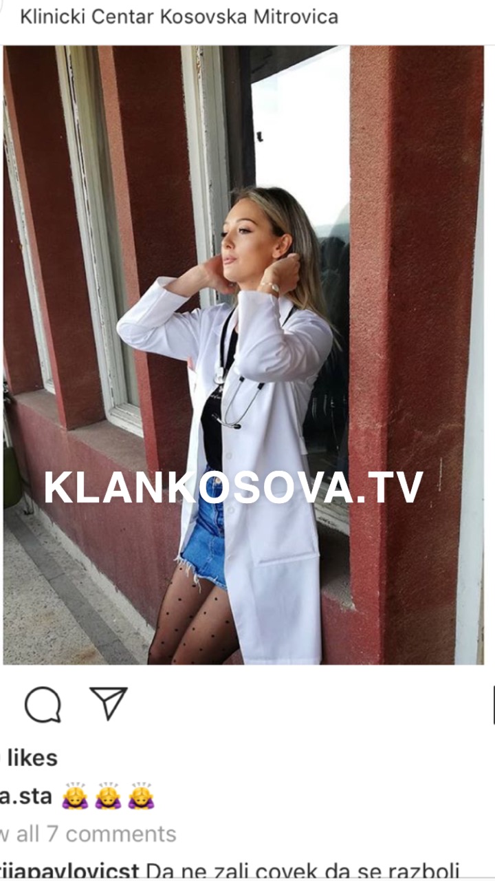 Në fotografitë e siguruara nga klankosova.tv, e njëjta mësohet se punon në Qendrën Klinike në Spitalin e Mitrovicës së Veriut.