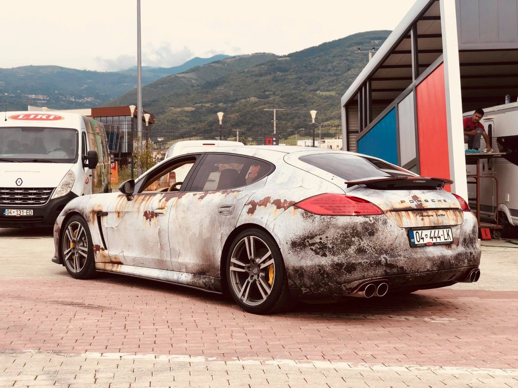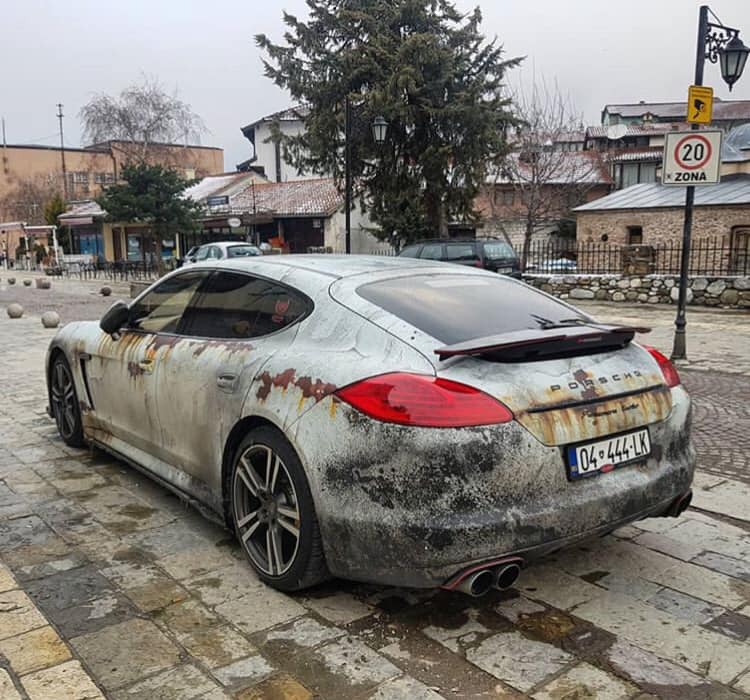 Kjo veturë i përket një garuesi kosovar të veturave të shpejta. I riu ka vendosur që t’i vë në mëdyshje njerëzit se a është vetura e tij e ngjyrosur apo e ndryshkur.