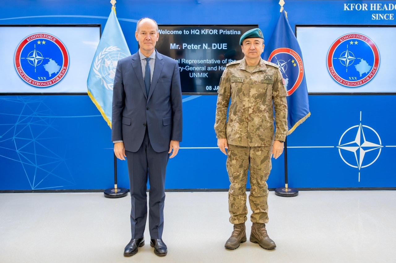 Komandanti i misionit të udhëhequr nga NATO, KFOR, gjeneralmajor Ozkan Ulutas, ka njoftuar se ka pritur në takim Përfaqësuesin Special të Sekretarit të Përgjithshëm të OKB-së dhe shefin e UNMIK-ut, Peter N. Due, në selinë e KFOR-it në Camp Film City në Prishtinë.
