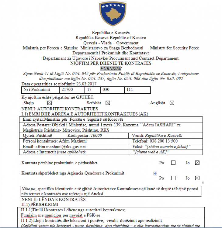 E tash nëse nuk do të ketë më ankesa kontrata në mes Ministrisë së Forcës dhe Sigurisë së Kosovës, është paraparë të nënshkruhet me 30 mars 2018.