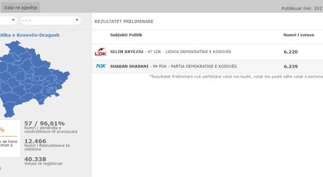 Shaban Shabani i PDK-së po prin me 6.239 vota, ndërsa Selim Kryeziu i LDK-së me 6.220 vota.