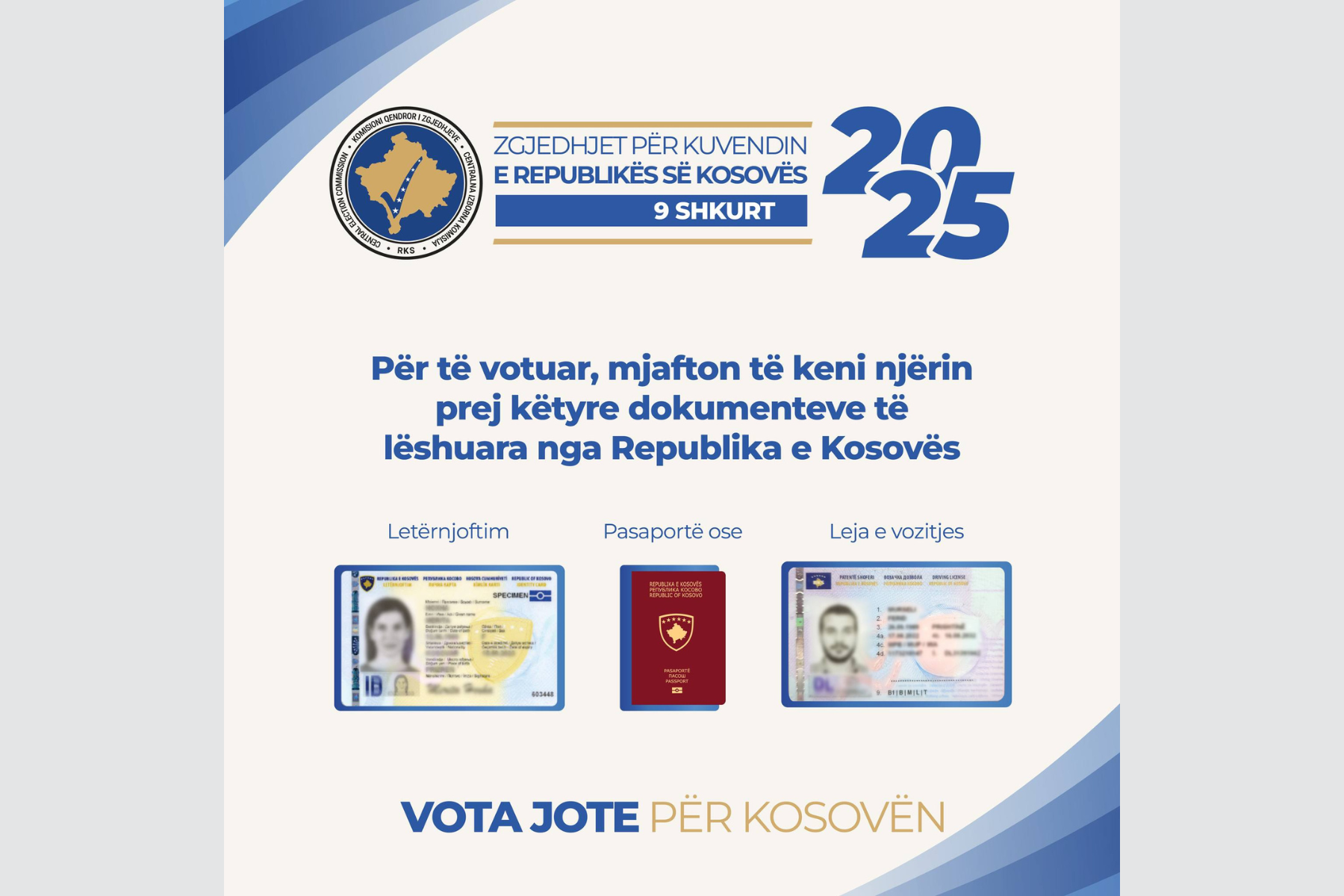 Komisioni Qendror i Zgjedhjeve (KQZ) ka bërë të ditur se qytetarët e Kosovës mund të përdorin letërnjoftimin, pasaportën ose patentëshoferin si dokumente të vlefshme për të votuar në zgjedhjet e 9 shkurtit.