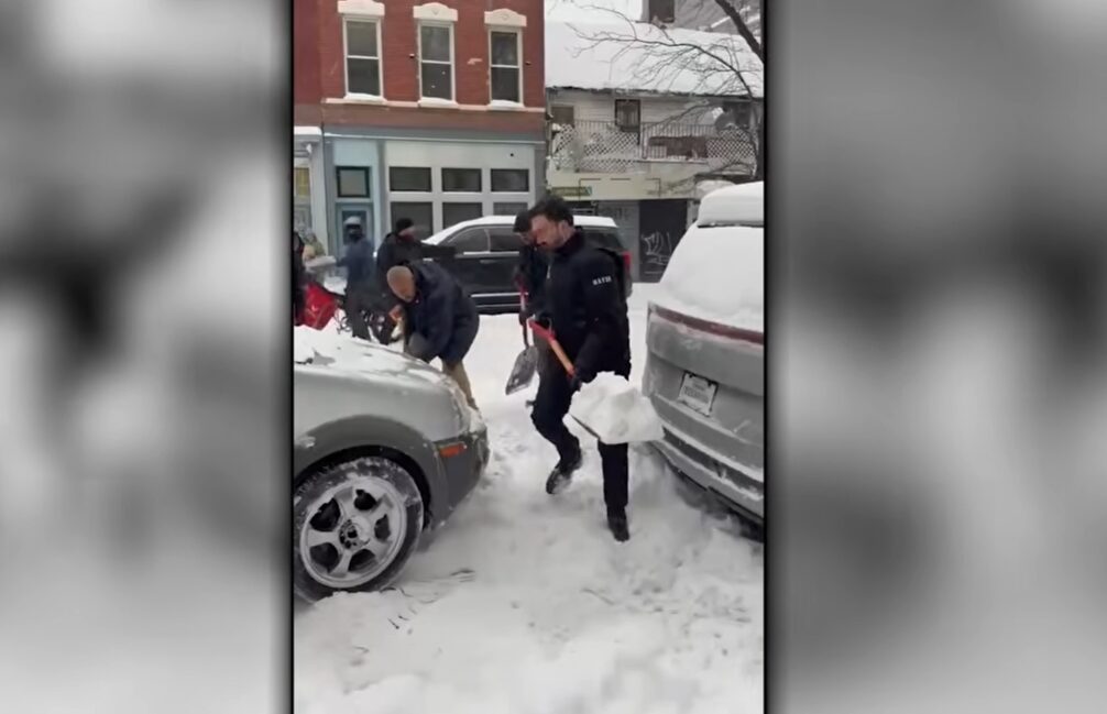 Megjithatë, ai nuk ishte shumë i zënë për të ndaluar dhe për të ndihmuar në nxjerrjen e një automjeti që kishte ngecur në borë në Brooklyn.
