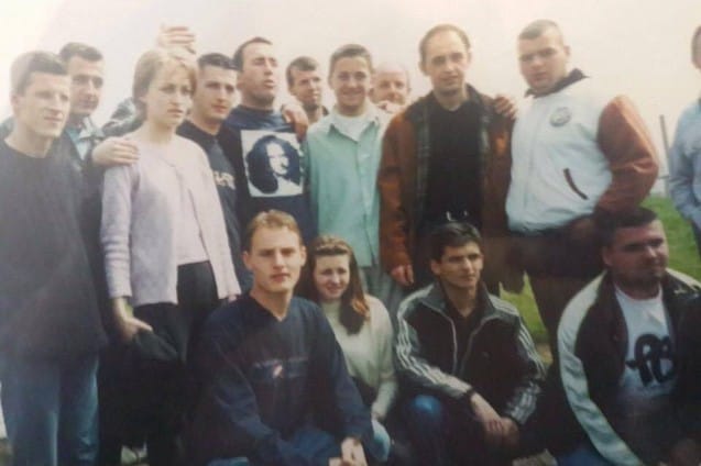 Në këtë fotografi shihet se si në mesin e disa personave edhe Kryeministri, Ramush Haradinaj po mbante një bluzë me mëngë të shkurta, me foton e Liderit të Vetëvendosjes, Albin Kurti, për të cilin po kërkohej liri, pasi që, në atë kohë Kurti ishte burgosur nga regjimi serb.