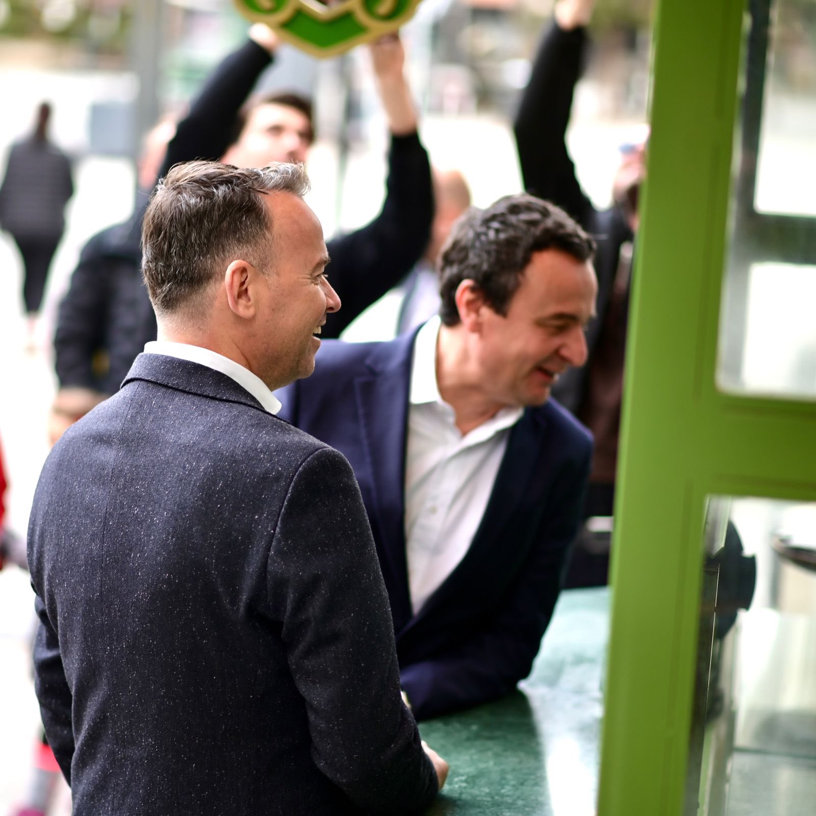 Kurti zbarkon në Mitrovicë një ditë para zgjedhjeve, shijojnë perecat bashkë me Faton Pecin