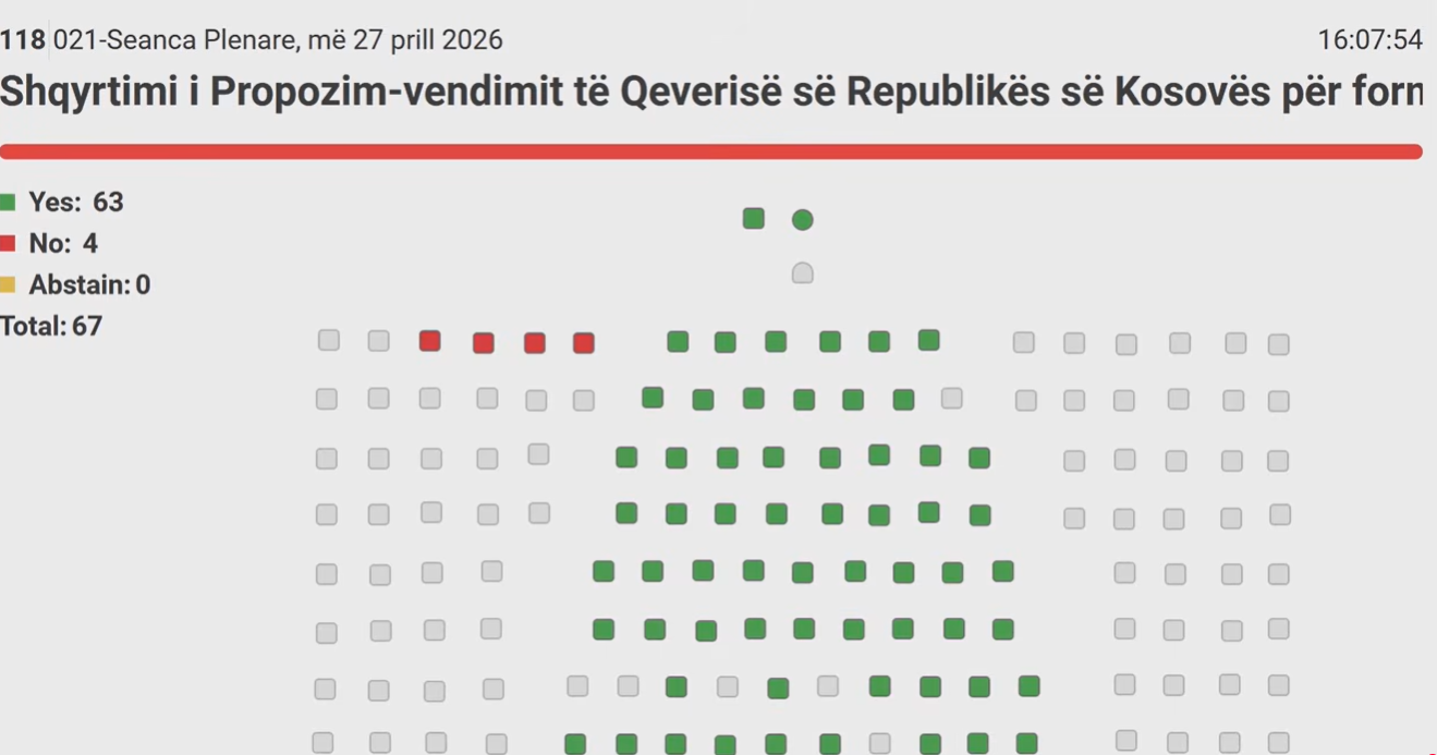 Pavarësisht kritikave të ashpra të opozitës, mazhoranca ka votuar për duke ia dhënë këtij vendimi 63 vota për.