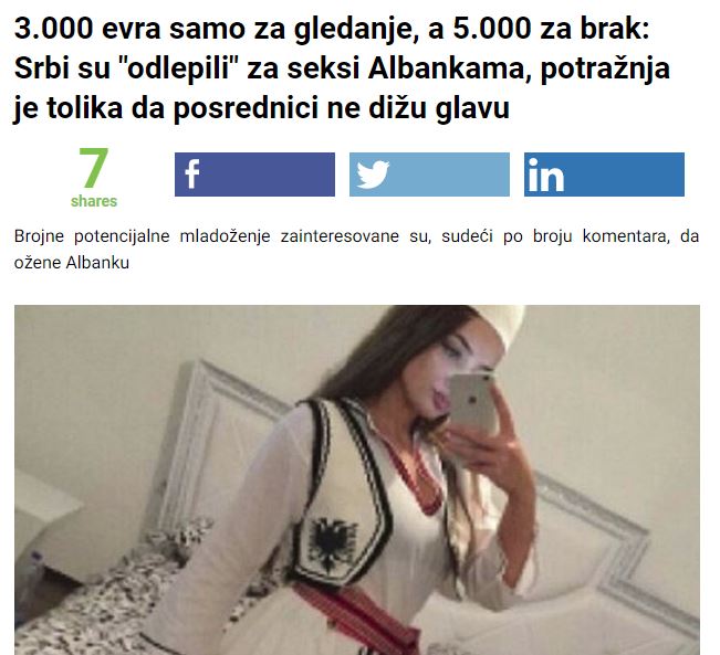 Serbët kanë krijuar një grup që quhet “Shqiptaret për martesë”. Aty postohen fotografi të femrave të bukura shqiptare, kinse kërkojnë martesë.