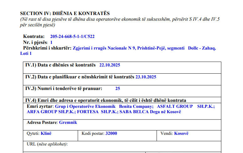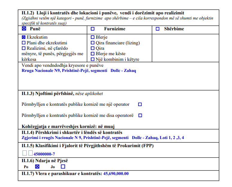 Vlera e parashikuar e kontratës arrin shifrën prej 45 milionë e 690 mijë eurove.