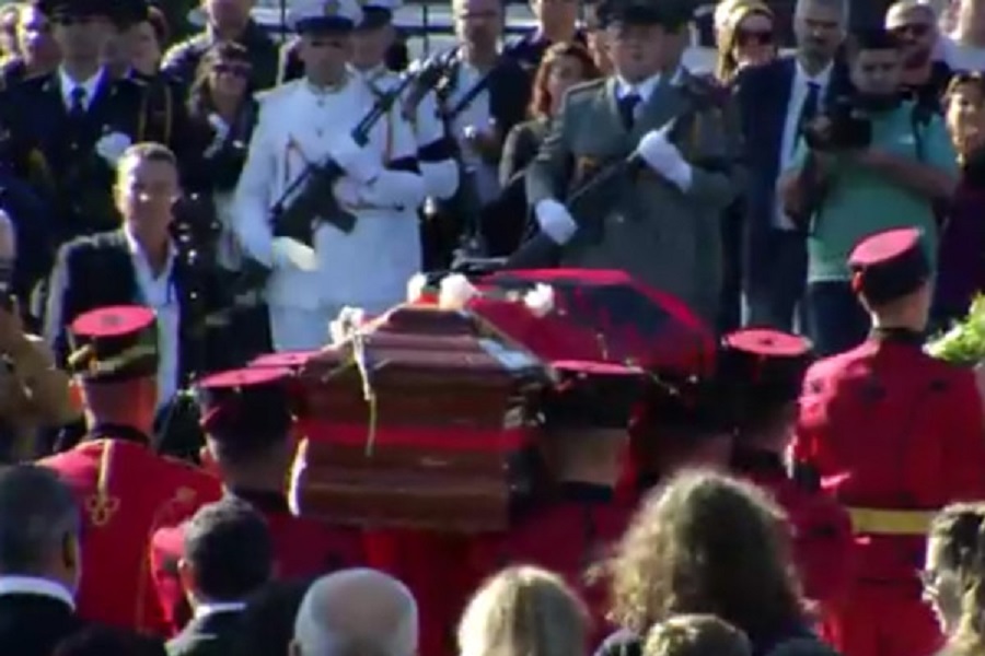 Në dalje të pallatit të Kongreseve arkëmorti u shoqërua dhe me tingujt e këngës së preferuar të liderit historik të PS “My Ëay”, të “Frank Sinatra”. Ndërkohë qindra qytetarë hodhën karafila të bardhë, mbi arkivolin e liderit historik të PS.
