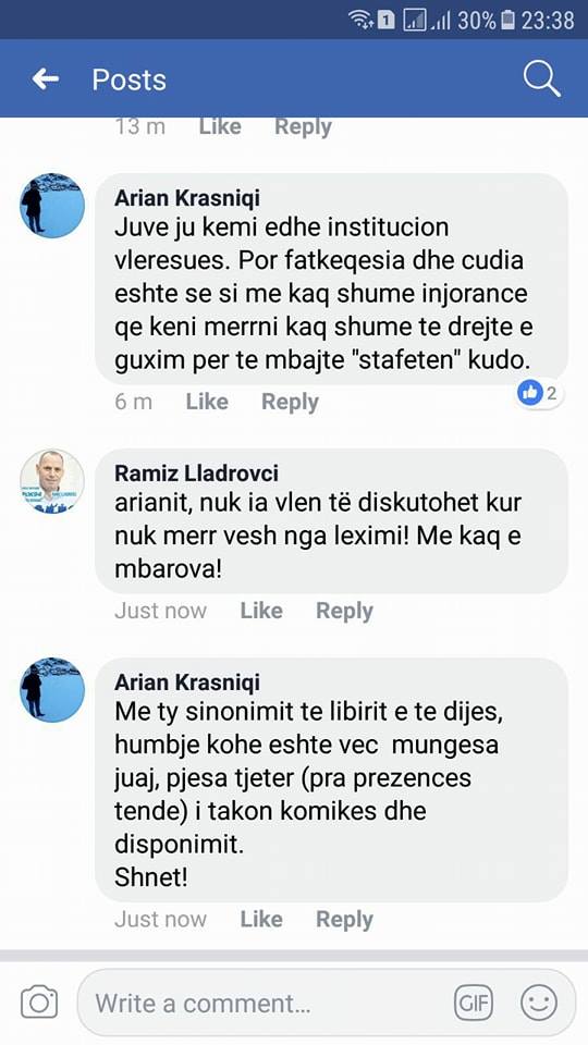 Në postimin e Krasniqit, ka filluar që të komentojë i pari i Drenasit, Ramiz Lladrovci.