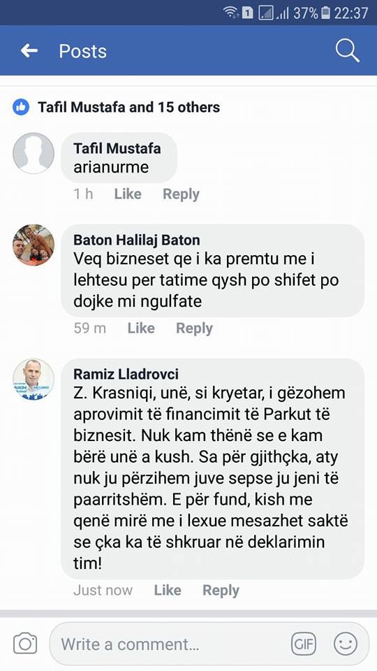 Ai kishte shkruar në rrjetin social facebook, se meritat për ndarjen e këtij fondi nga BERZH, duhet t’i atribuohet Ministrisë së Tregtisë dhe Industrisë, e jo Komunës së Drenasit.