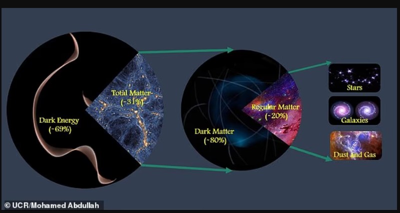 Shkencëtarët aktualisht vlerësojnë se materia e errët përbën rreth 27% të universit, ndërsa energjia e errët rreth 68% – duke lënë vetëm 5% për materien normale.