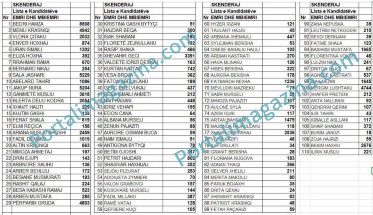 PortaliMagazina.com ka siguruar listën me votat që secili kandidat i PDK-së, ka marrë në Skënderaj.