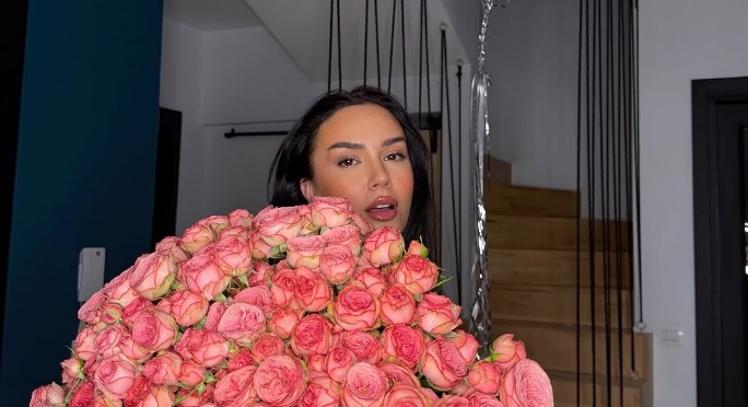 Ajo ka publikuar disa fotografi me trëndafila rozë në krah, teksa rrezaton lumturi dhe gëzim.