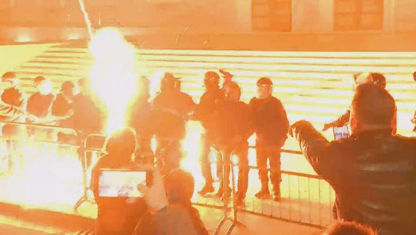 Dy punonjës të Policisë së Shqipërisë janë lënduar gjatë protestës në Tiranë, ku disa pjesëmarrës hodhën molotovë, lëndë piroteknike dhe sende të forta.
