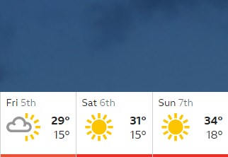 Temperatura maksimale e ditës nesër pritet të jetë 29 gradë celsius dhe nuk parashihet të ketë vranësira.