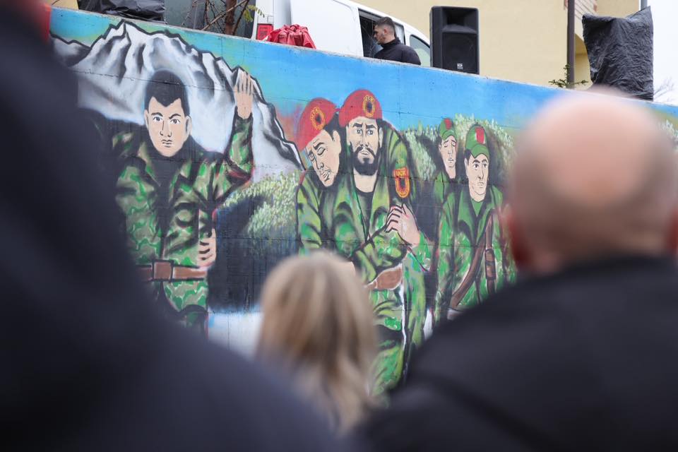 Murali paraqet figurat e luftëtarëve të UÇK-së dhe simbolikën e rezistencës për liri, duke u bërë një pikë e re kujtimi dhe respekti për sakrificën e tyre./Lajmi.net/