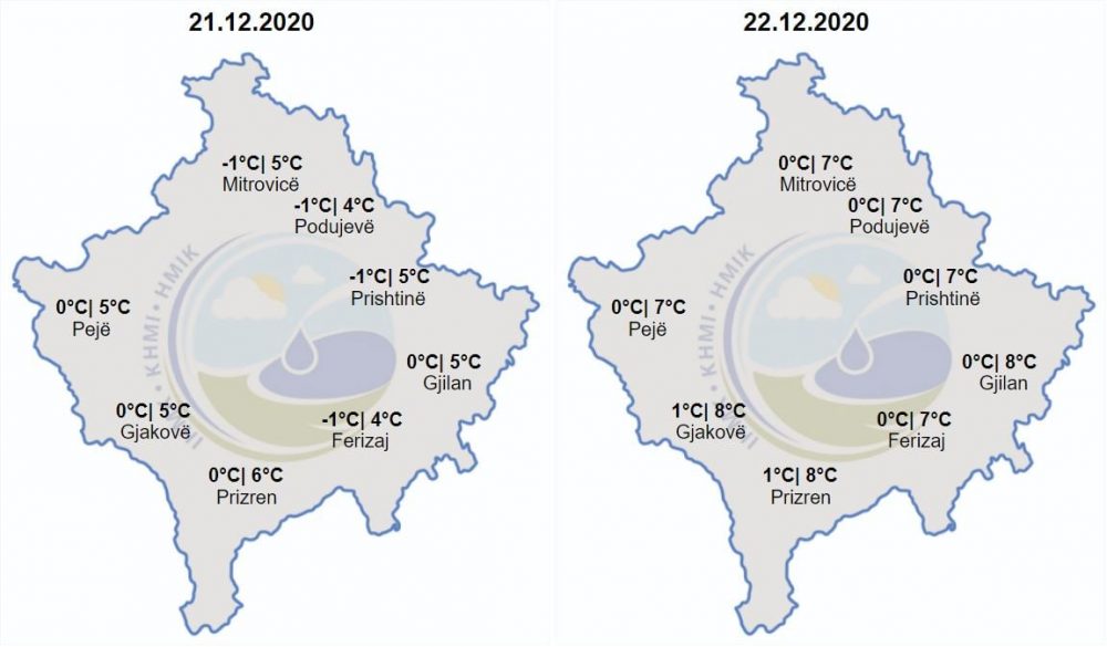 Sa i përket temperaturave maksimale ato vazhdojnë të mbeten mbi vlerat e normales për pesë ditë të ardhshme. Minimalet do të lëvizin ndërmjet -2 deri 1 gradë Celsius, ndërsa maksimalet e ditës parashihen të lëvizin ndërmjet 5-10 gradë Celsius. Do të fryjë erë nga jugperëndimi dhe veriperëndimi me shpejtësi 1-8 m/s.
