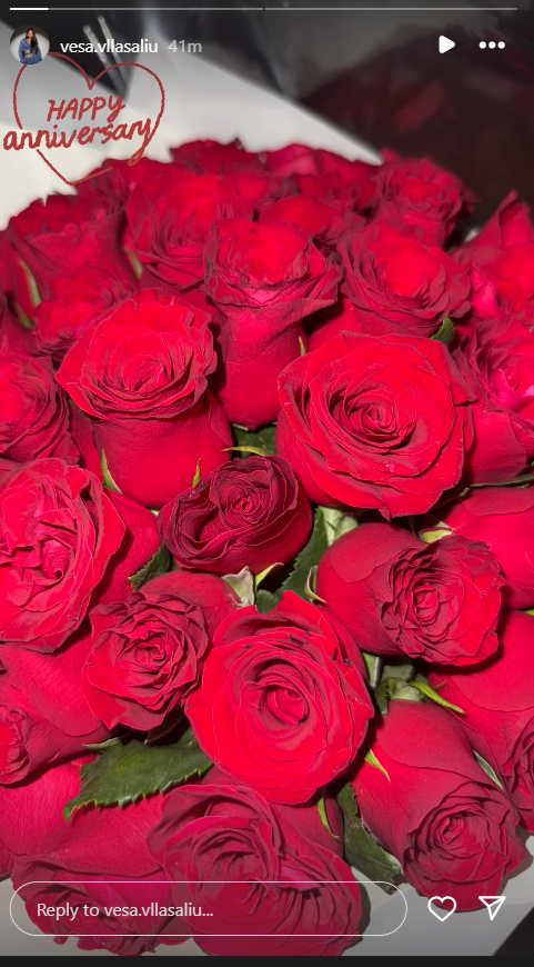 Përveç puthjeve e përqafimeve, Daku i ka bërë edhe një dhuratë romantike së dashurës së tij, një buqetë me lule. /IndeksOnline/