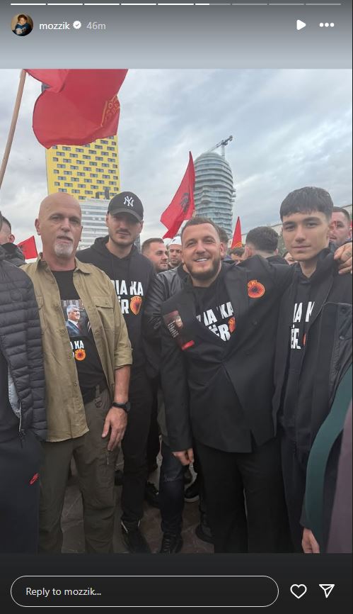 Reperi i njohur nga Ferizaj, Mozzik, ishte i pranishëm sot në protestën madhështore në sheshin “Skënderbej” në Tiranë, në mbështetje të krerëve të Ushtrisë Çlirimtare të Kosovës, të cilët po gjykohen në Hagë për akuza të pretenduara për krime lufte.
