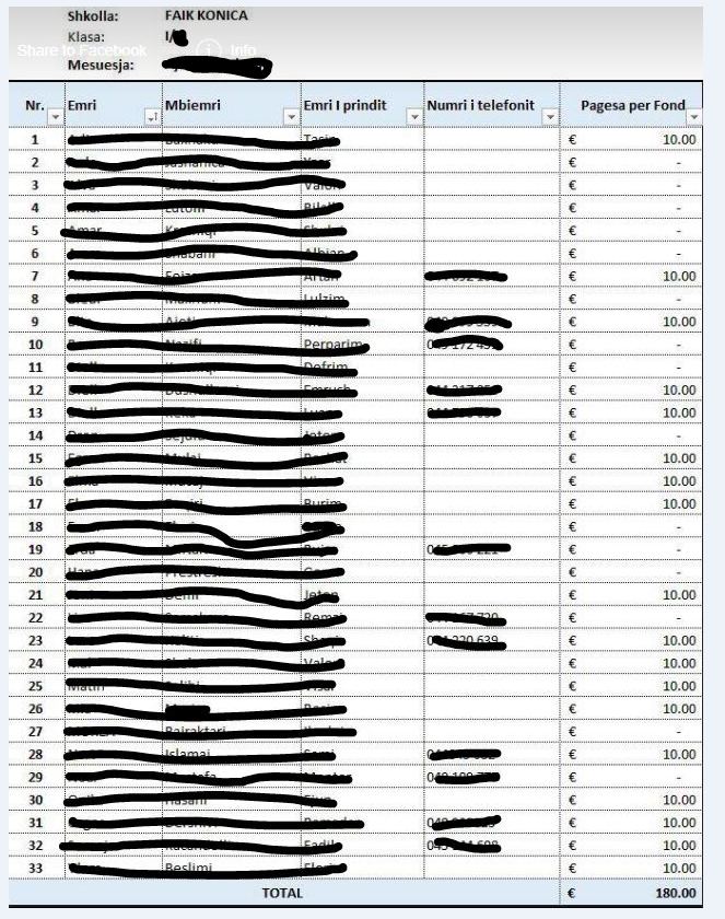 Megjithatë, pas kërkesës së mësueses së klasës, prindërit kishin arritur t’i mblidhnin vetëm 180 euro, dhe jo të gjithë kishin pranuar të japin këtë shumë të parave.