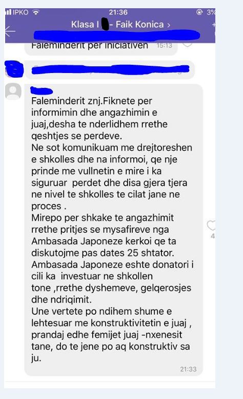 “Ne sot komunikuam me drejtoreshen e shkolles dhe na informoi, qe nje prind me vullnetin e mire I ka siguruar perdet dhe disa gjëra tjera në nivel të shkollës të cilat janë në process”, thuhet tutje në një njoftim për prindër.