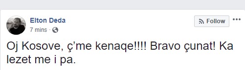 Kjo gjë padyshim ka gëzuar edhe këngëtarin nga Shqipëria, Elton Deda, i cili dhe ka reaguar përmes një statusi.