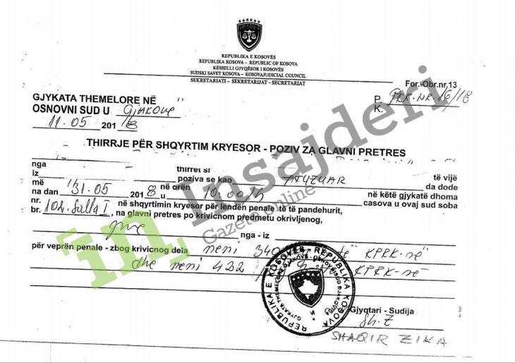 Lekaj është thirr që të paraqitet në gjykim më 31 maj në Gjykatën Themelore të Gjakovës, për të dhënë llogari fiks për 631, 671.82 euro, shumë kjo që dyshohet se i ka keqpërdorur gjatë viteve 2008 – 2014, sa ishte në krye të Komunës, shkruan Insajderi.