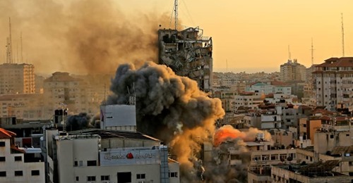 Një ndërtesë 12 katëshe në Gaza, që strehon zyrat e mediave Associated Press dhe Al Jazeera, është shembur, pasi u godit nga një raketë izraelite.